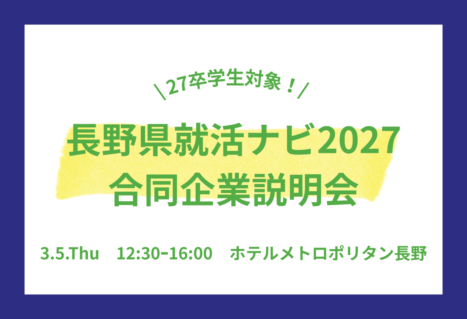 3月5日、長野駅近くの「ホテルメトロポリタン長野」にて開催される合同企業説明会に参加します!